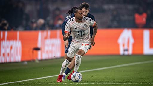© FC Bayern - Zeige in voller Größe Josip Stanisic am Ball im Champions League-Spiel des FC Bayern bei Paris Saint-Germain